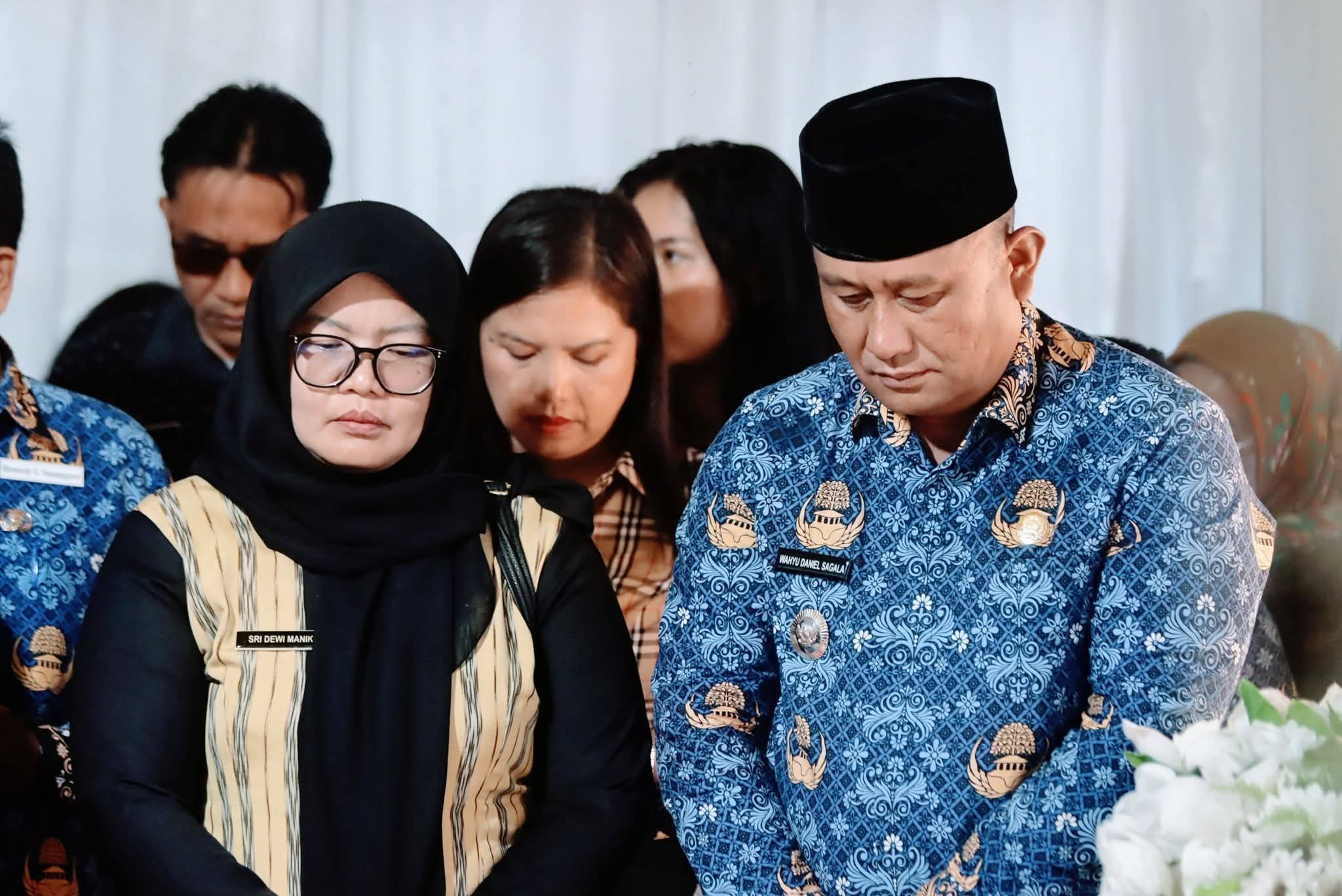 Dairi,asatupro.com-Bupati Dairi Vickner Sinaga, didampingi Ketua TP PKK, Kabupaten, Rita Puspita Vickner Sinaga menyampaikan belasungkawa mendalam atas meninggalnya Kepala Desa Mbelang Malum, Sunta Tutur Simorangkir, yang tutup usia 54 tahun, Sabtu (18/4/2026).