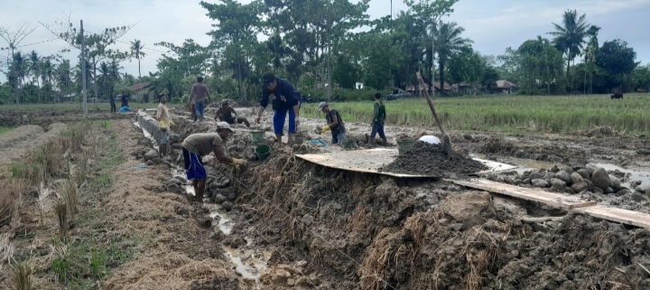 Pekerjaan pelebaran dan pengerasan badan jalan sepanjang 1.500 m x 4 m ini bertujuan untuk mempermudah akses transportasi dan distribusi hasil pertanian.